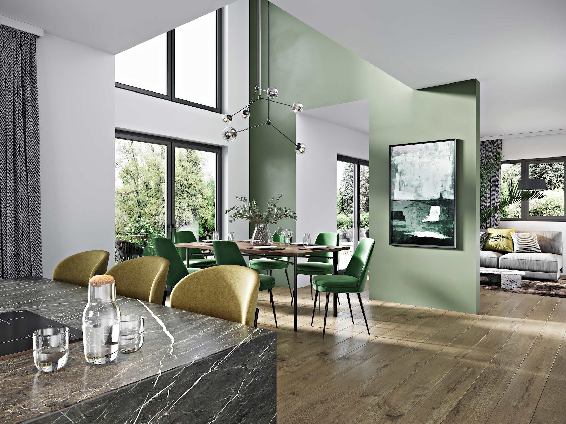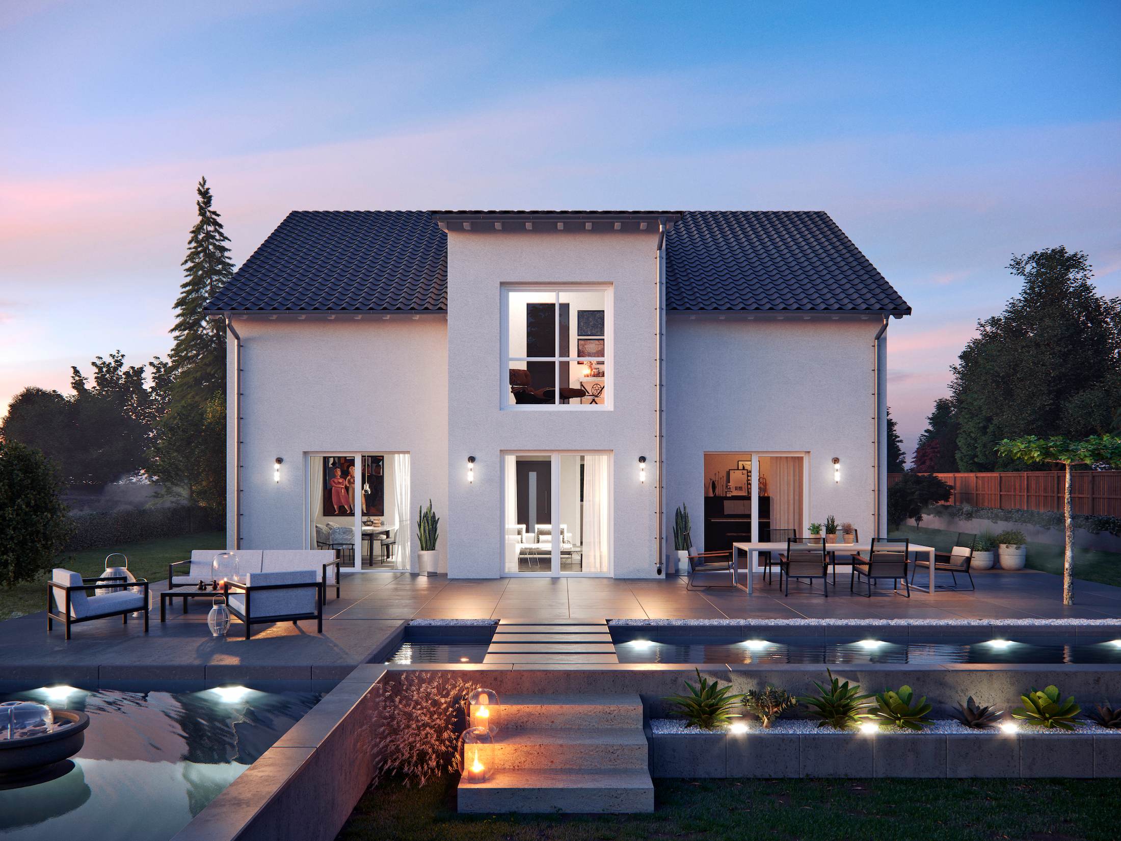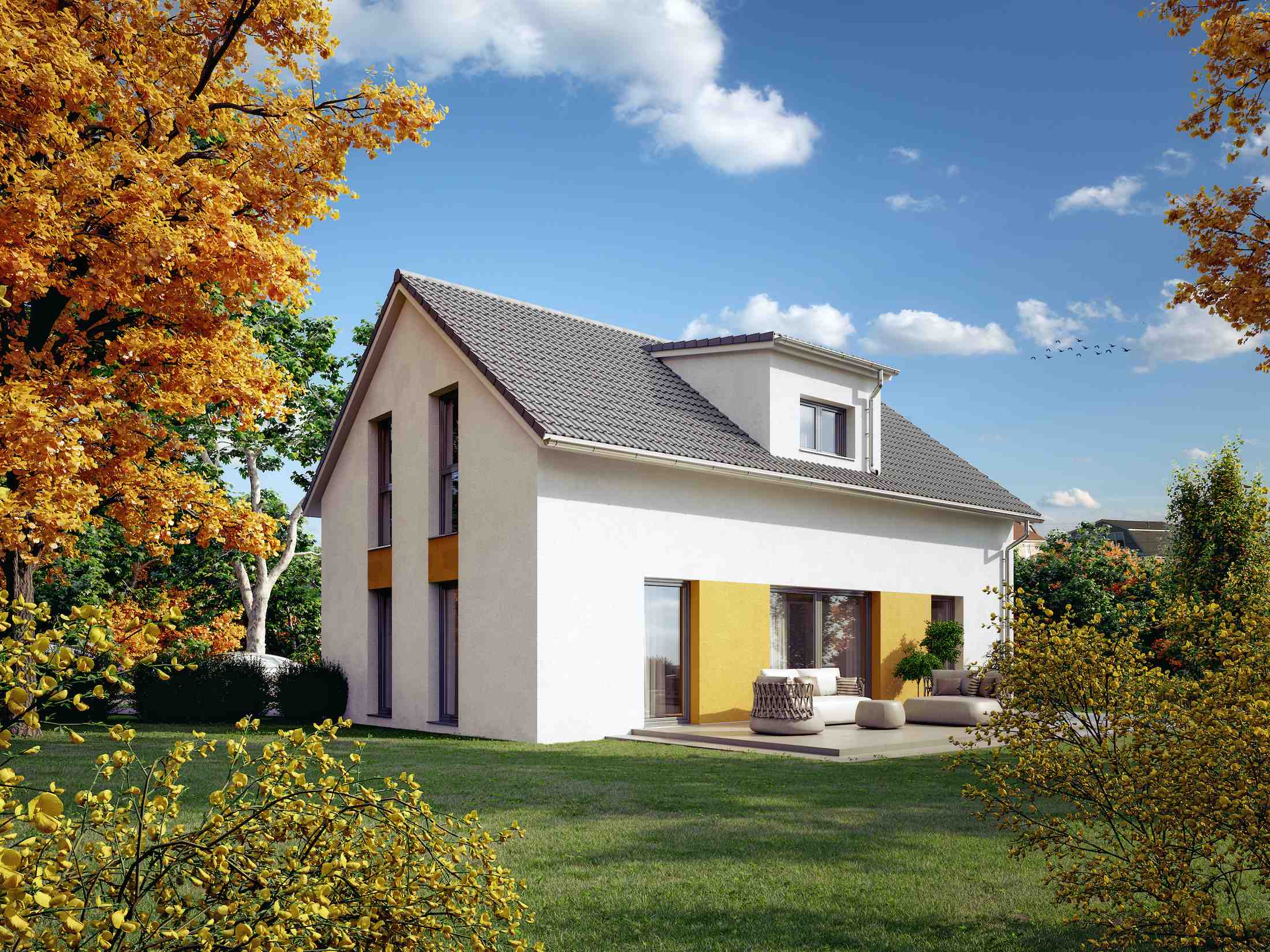 Als großzügiges Stadthaus bietet unser Kissenbrück alles, was man sich vom Eigenheim nur wünschen kann. Der lichtdurchflutete Wohn-, Ess- und Kochbereich ist mit seinen ca. 50 m² durch Offenheit und Platz geprägt. Neben einem Elternschlafzimmer wird durch die weitläufige Raumaufteilung im Obergeschoss zusätzlicher Platz für drei weitere Kinder- bzw. Gästezimmer geschaffen.